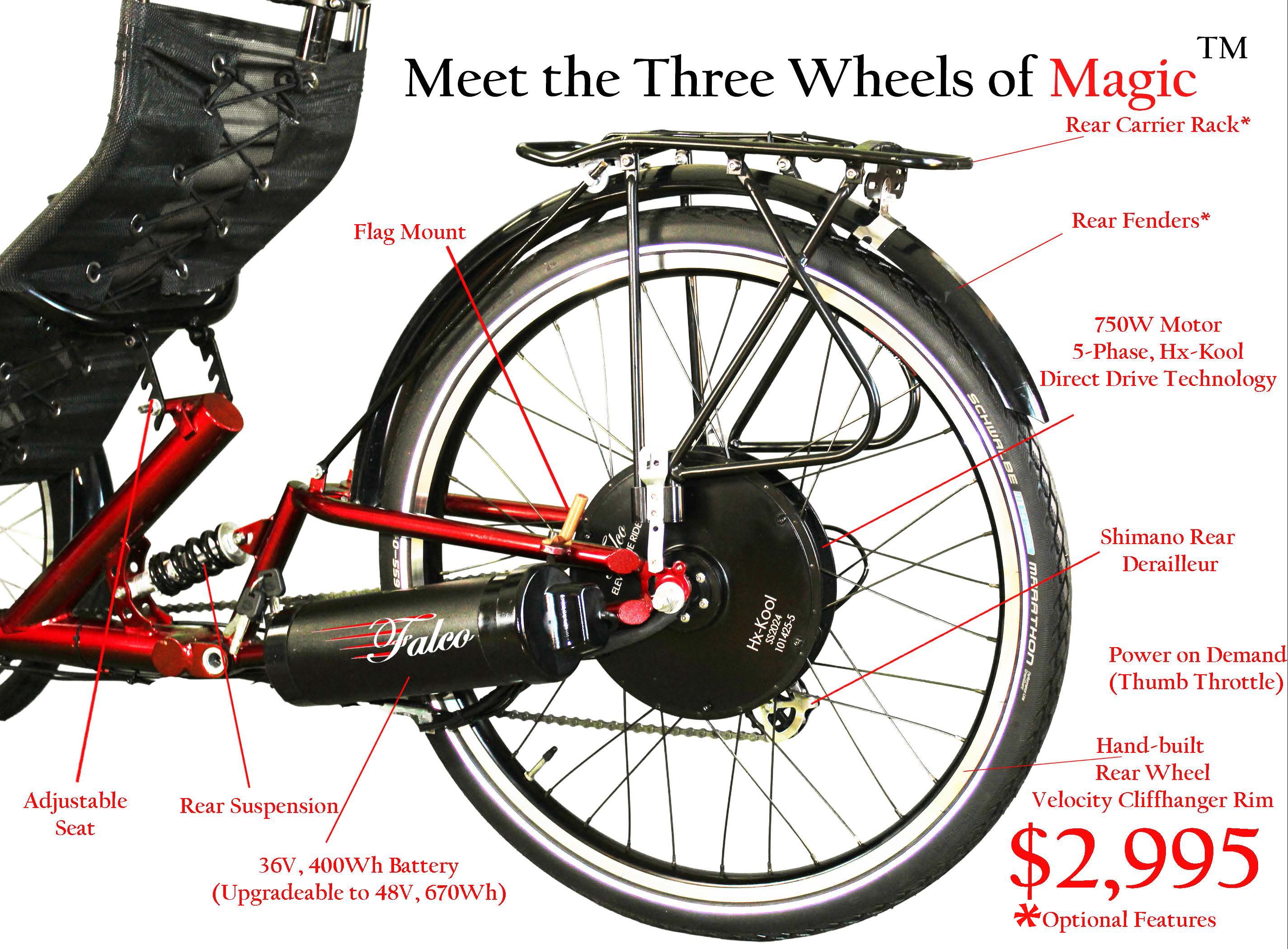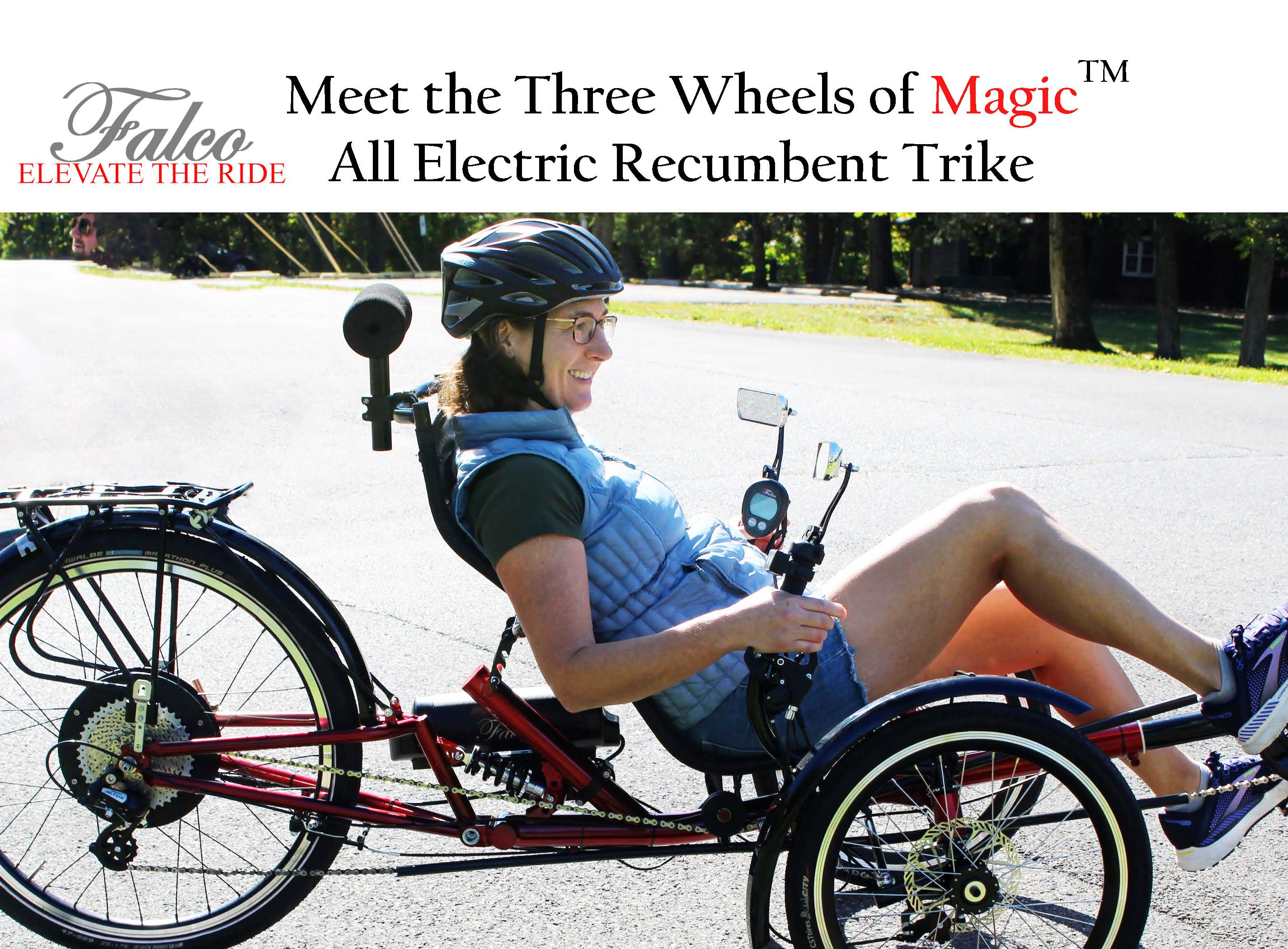 Three Wheels of Magic electric assist trike combines Zero Carbon high-speed trail fun, commuting, and advanced training into one core direct drive technology with tremendous benefits to the end user. The eTrike delivers a vast range and can achieve speeds of up to 28 mph. With its lightweight lithium batteries mounted to the frame, a rider experiences unprecedented power in the ride.